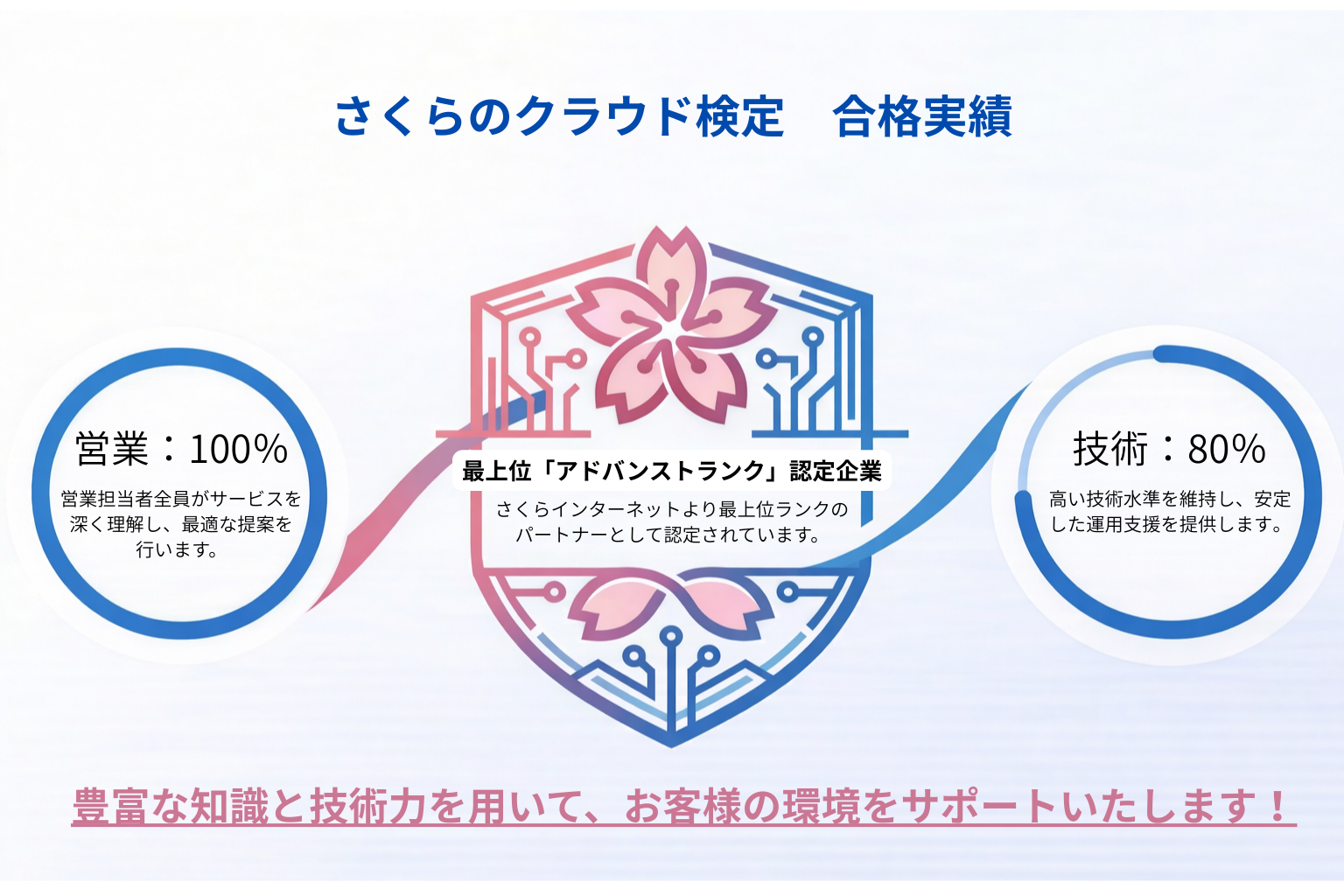 さくらのクラウド アドバンストパートナーとしての取り組み|検定合格率(営業100%・技術80%)のお知らせ