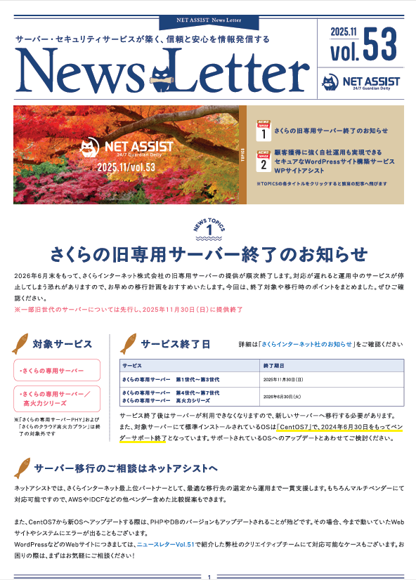 TOPICS #01:「さくらの旧専用サーバー」 サービス終了のお知らせ