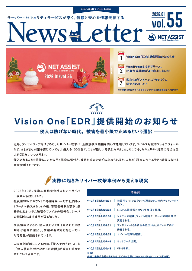TOPICS #01:EDR搭載 セキュリティ統合管理ツール「Vision One」のご案内