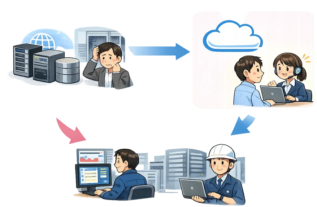 移行作業はどこの会社様に依頼してもまとまった金額がかかること、自身で対応するには中々荷が重い作業だと思います。弊社のインフラエンジニアがしっかり対応いたしますので、是非ご利用ください。