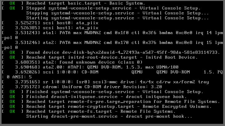 ISO再インストール開始後のコンソール画面