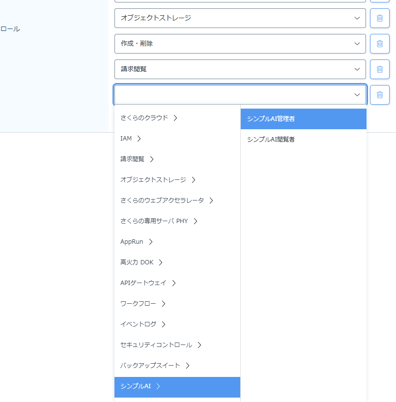 またAPIキー発行の際に、発行画面で遷移が停止してしまう際は、ユーザのIAMポリシーに「シンプルAI管理者」が不足している可能性があるので、追加しておきましょう。