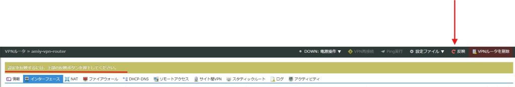 設定後は右上の反映ボタンを押す必要があります。VPNルータの場合はだいたい必要なので忘れないようにしてください。