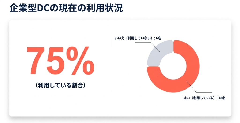 また、アンケートの結果、7割以上の社員が企業型確定拠出年金(企業型DC)を利用していることが確認されました。本制度をご活用いただいていることを大変うれしく思うとともに、今後も皆さまの資産形成や金融リテラシーの上昇、サポートの充実に努めてまいります。