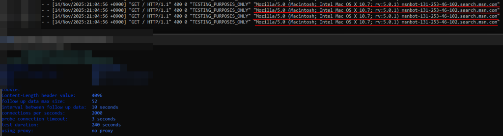 先日個人サーバーのシステム限界点とボトルネック区間を調査するためDDoSテストを進行しながら、アクセスログでUser-Agentがランダムに変わることを発見いたしました。