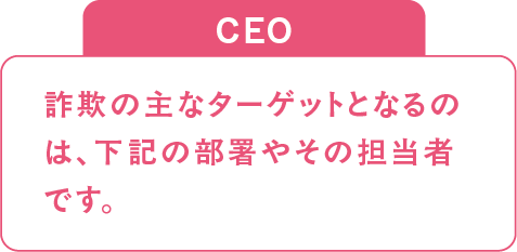 CEO詐欺の主なターゲットとなるのは、下記の部署やその担当者です。