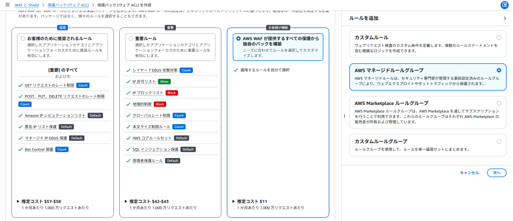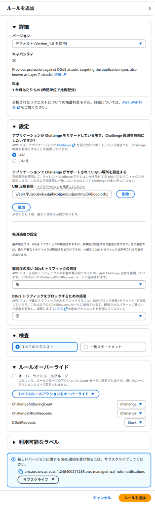 「DDoS保護マネージドルール」はALBに対して利用可能な機能で追加料金なしでの導入が可能です。