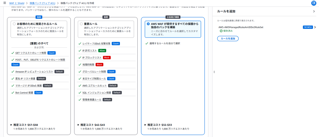 2025年6月から「DDoS保護マネージドルール」と「マネージドルールグループ(AWS managed rule group DDoS protectio)」機能が追加されました。