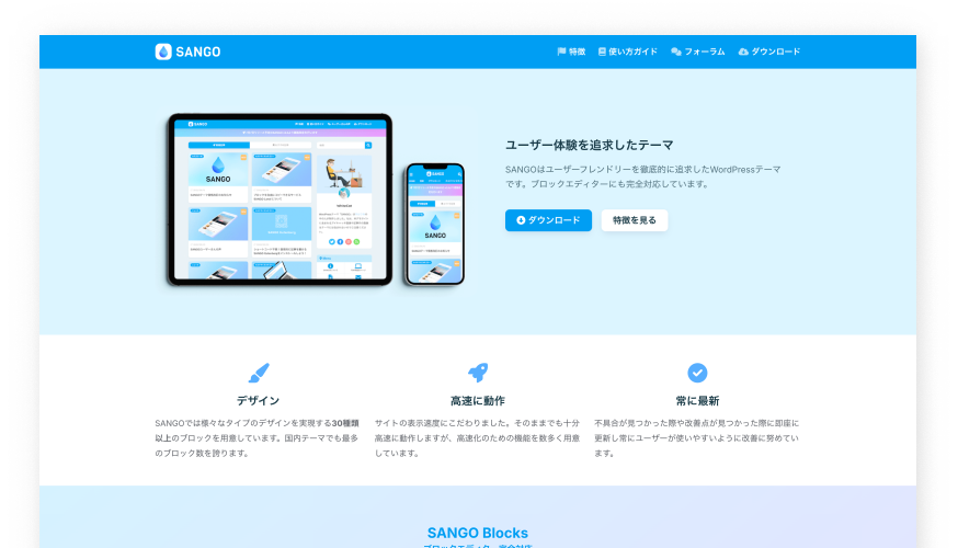このテーマはSEOにも強く、美しいデザインが魅力です。豊富な機能とカスタマイズ性を備えており、SEOに強く、高速なWebサイトを作成したい方におすすめです。