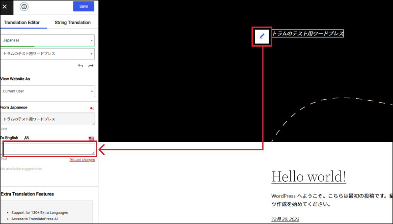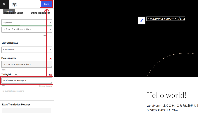 入力が完了したら、上部にある「Save」ボタンを押してください。これで、翻訳内容が保存されます。