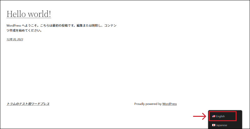 ご覧のとおり、標準的なWordPressページです。ここから英語化を開始しましょう。