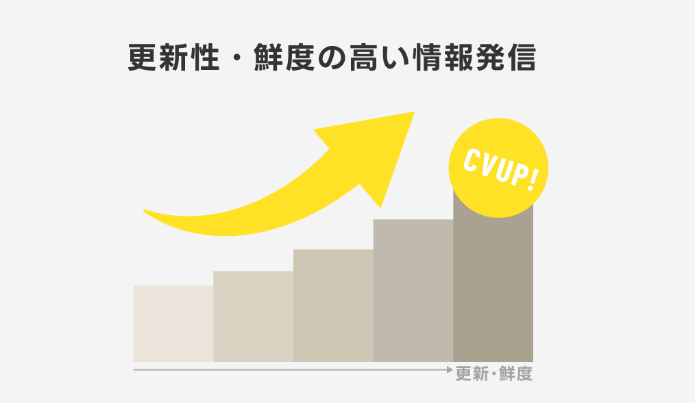 ホームページ運営をする際は、鮮度が高い情報発信を心がけましょう。鮮度が高い情報発信をすれば上位表示しやすくなるため、自社のことを認知していない層に知ってもらえます。