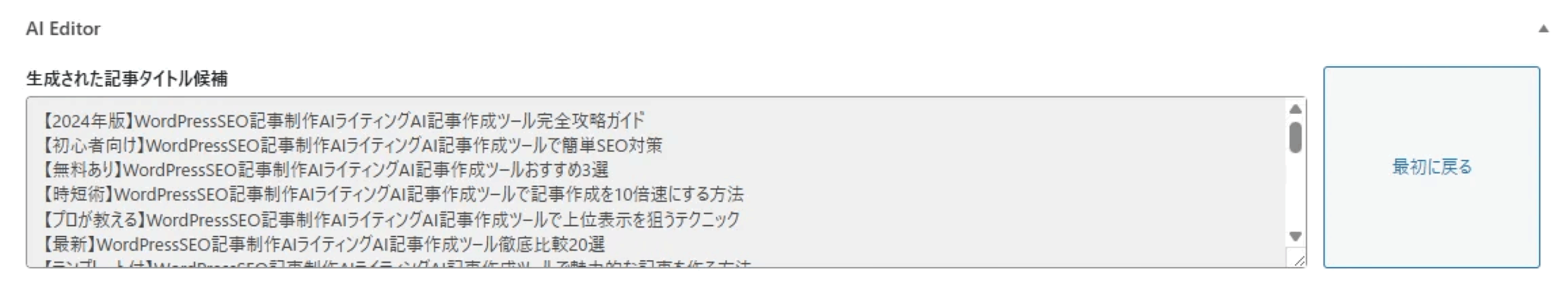 これだけで、AIがSEO最適化された記事を数秒で自動生成します。