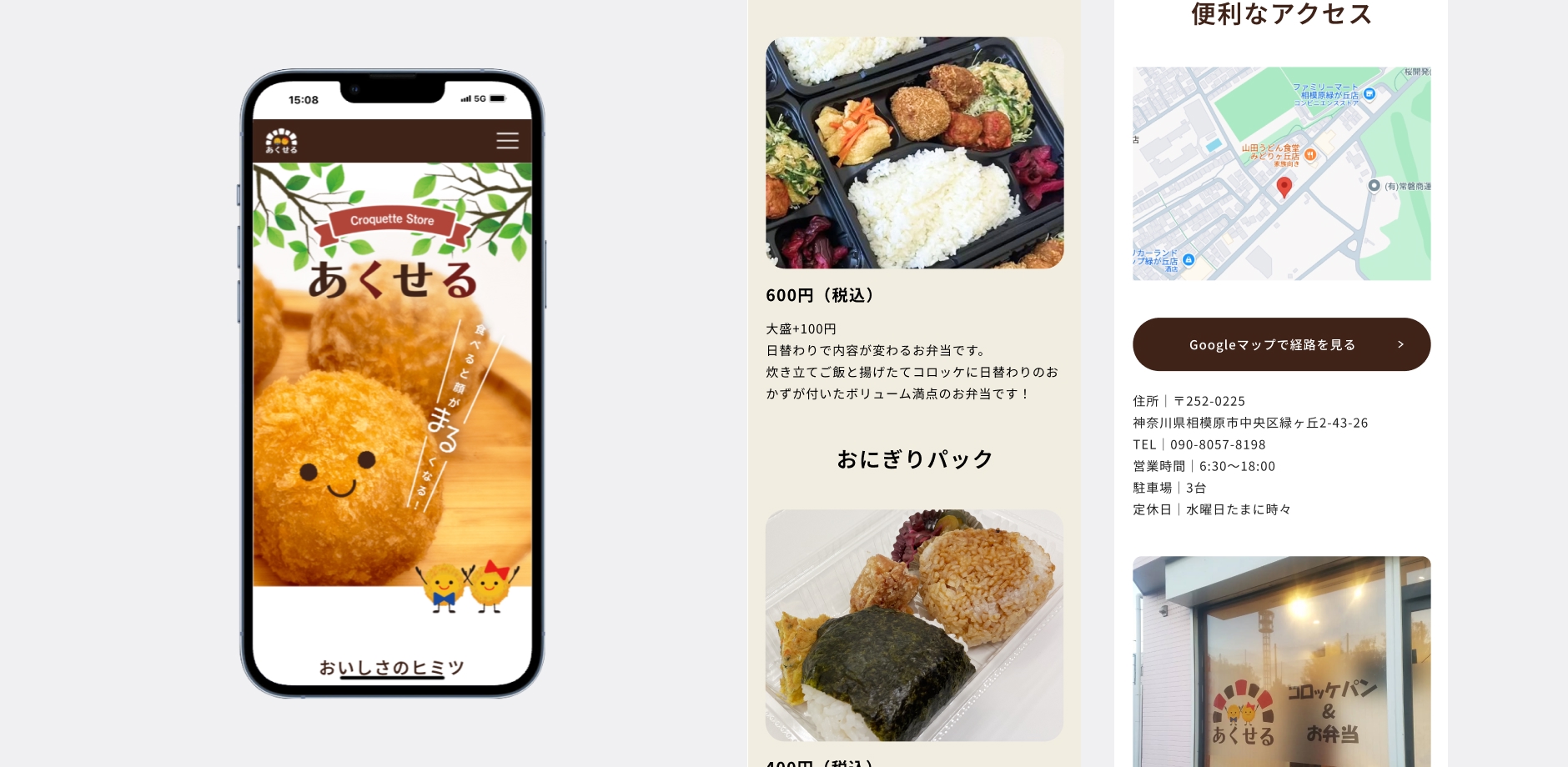 美味しいコロッケ屋さんのサイト、「あくせる」さんのLP制作を行いました。