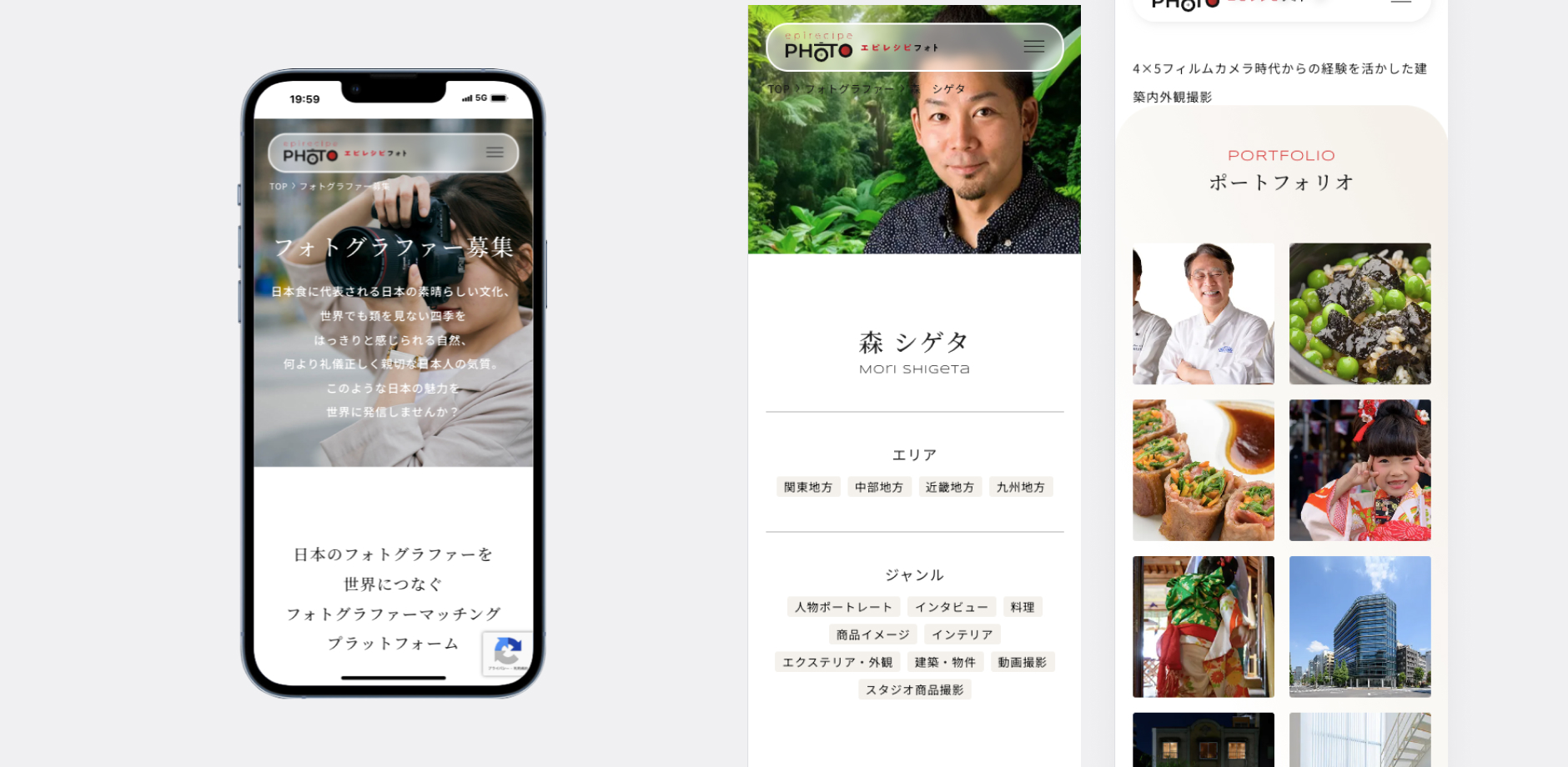 日本在住のカメラマンと世界のユーザーを結ぶ、カメラマンマッチング多言語サイト「エピレシピフォト」の制作を行いました。