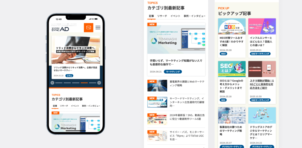 インターネット広告代理業務、メディア運営事業を行う株式会社シーピアーズ様が運営するメディア「SYNCAD(シンクアド)」のメディアリニューアルを担当させていただきました。