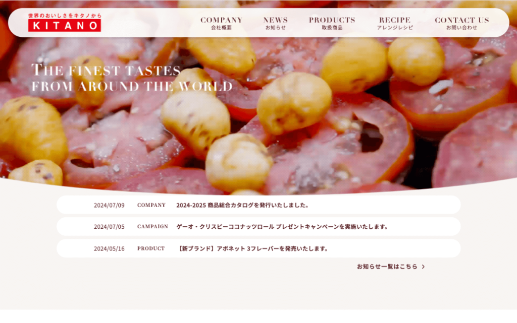「ローカー」や「バールセン」と世界に知られるお菓子や食材の輸入販売代理事業を手がけるキタノ商事株式会社様のコーポレートサイトをリニューアルいたしました。