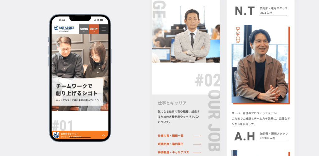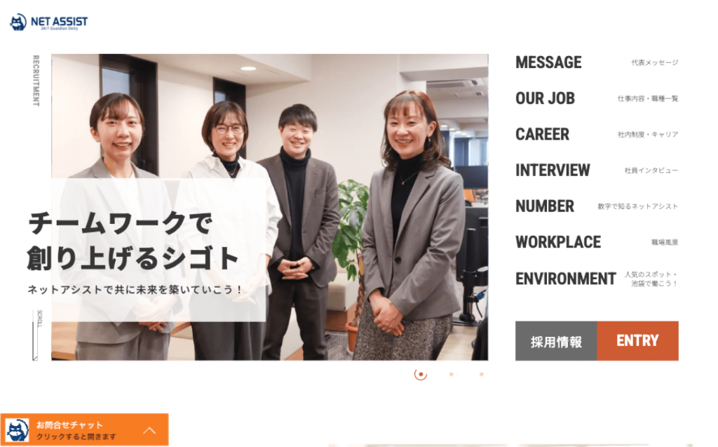 公開日:2022.02.24 更新日:2024.09.20 株式会社ネットアシスト様|リクルートサイトリニューアル 国内主要クラウドベンダーのサーバー保守・監視・運用を手がける株式会社ネットアシスト様の、リクルートサイトリニューアルを行いました。 セキュリティに対する意識とニーズの高まりにより人材増強は不可欠で、採用における母集団の形成や指名度の向上が課題でした。また、入社後のミスマッチを減らしたいという要望もあり、企画段階からご依頼をいただきました。